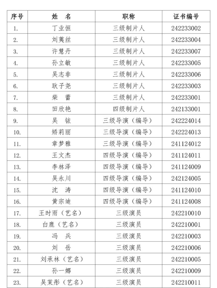 这45位演员、导演、制片人通过初、中级职称评审
